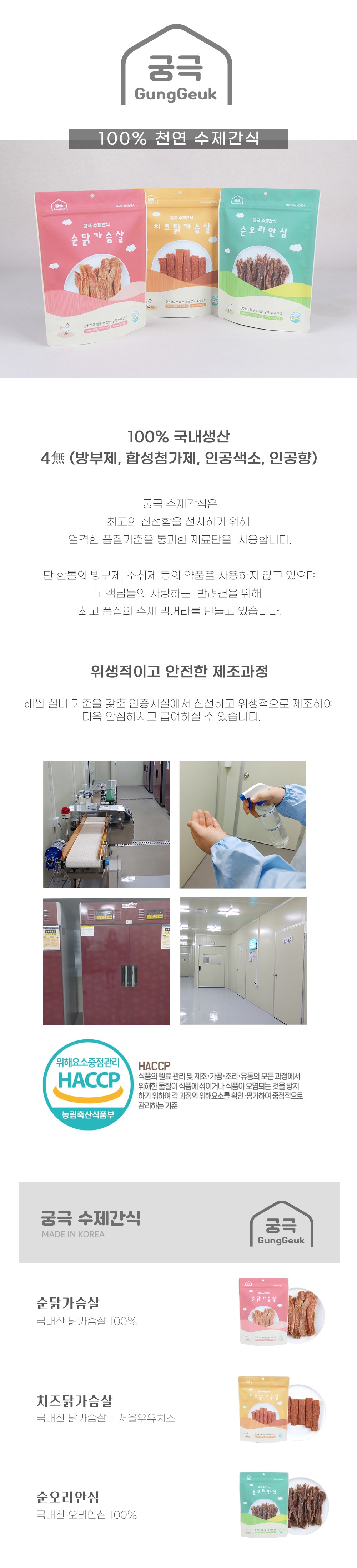 단 한톨의 방부제, 소취제 등의 약품을 사용하지 않고 있으며 최고 품질의 수제 먹거리를 만들고 있습니다.