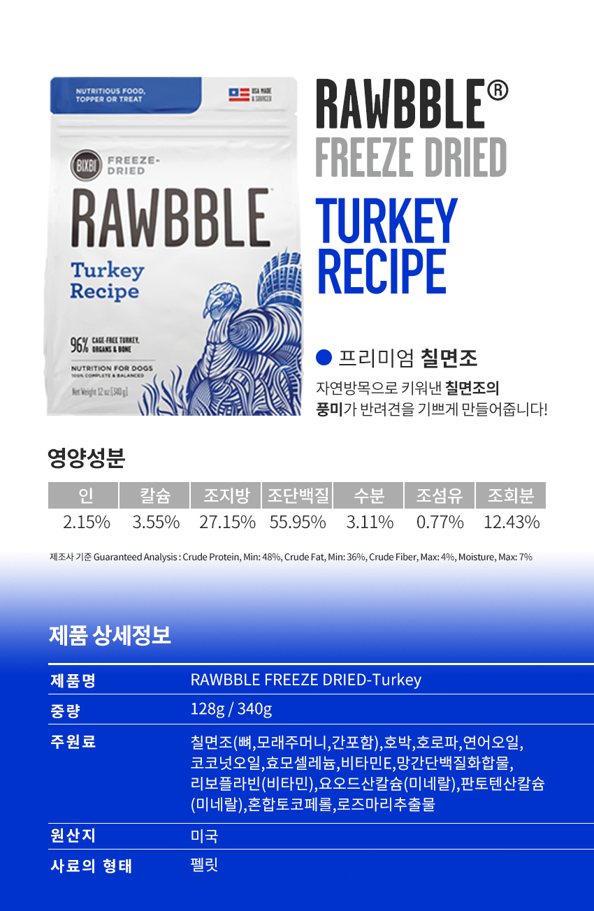 빅스비 러블 동결건조 사료 칠면조 340g 737g