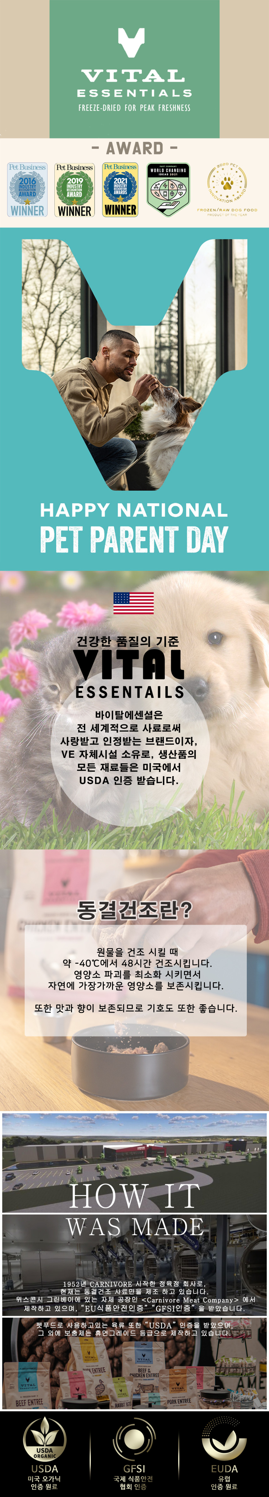 바이탈에센셜 동결건조 제품은 미국에서 수확한 재료들로만 만듭니다.