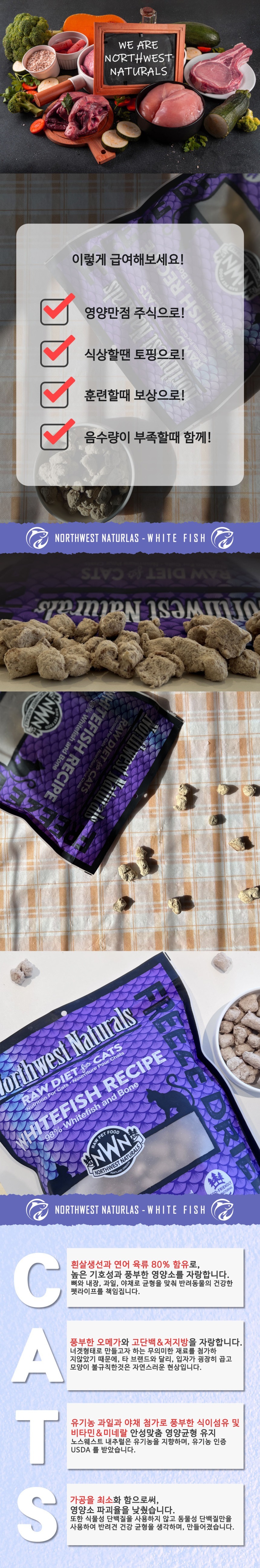 [매직코코 고양이 모래 2.3kg 증정] 노스웨스트 내추럴 동결건조 고양이 사료 화이트피쉬 312g
