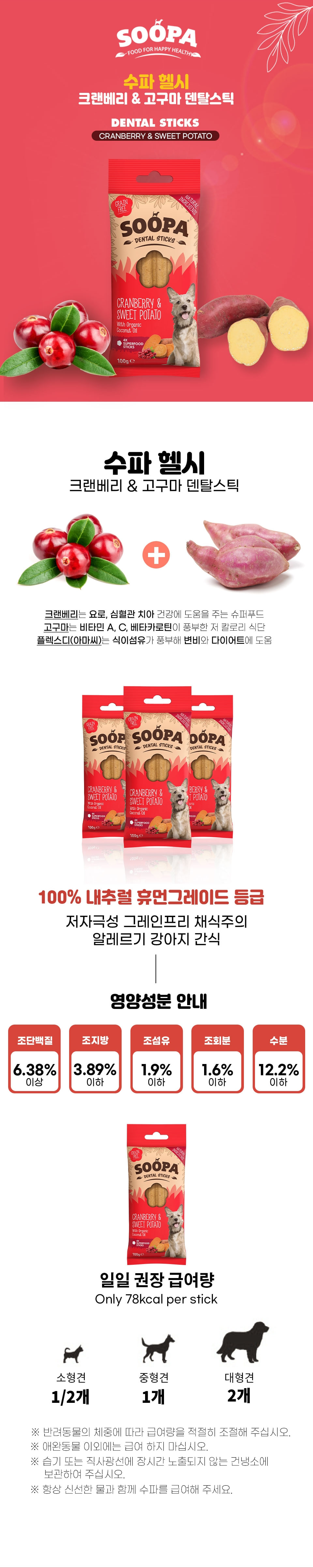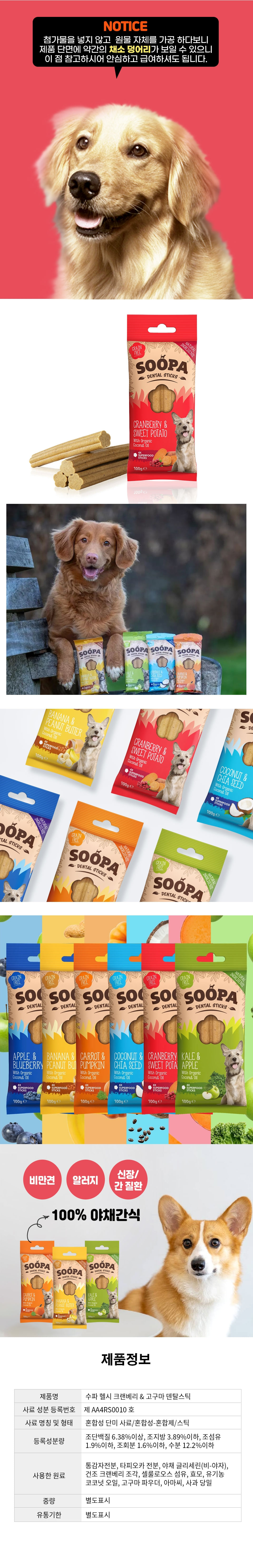 수파 그레인프리 100%식물성 건강한 야채 덴탈 스틱 크랜베리&고구마 100g