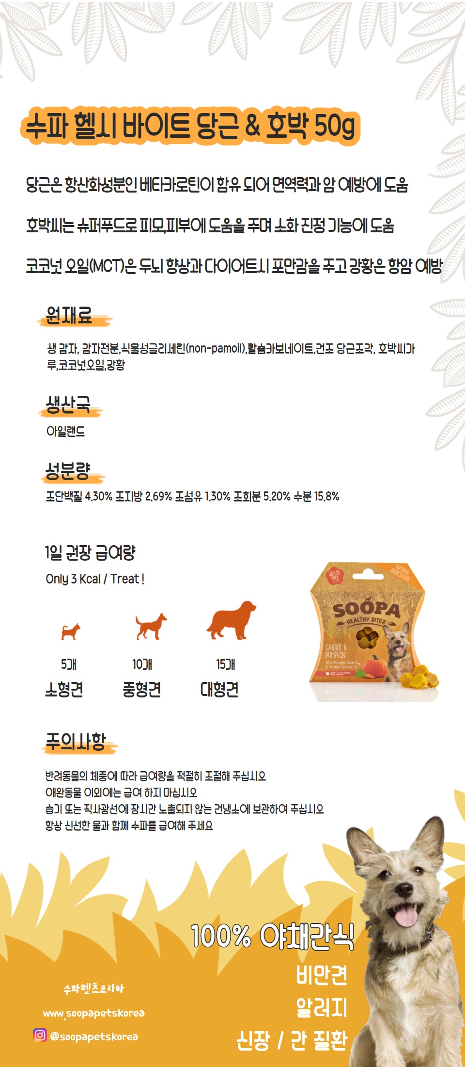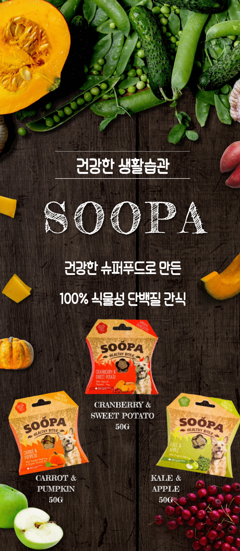 수파 그레인프리 100%식물성 헬시바이트 야채 당근&호박 50g