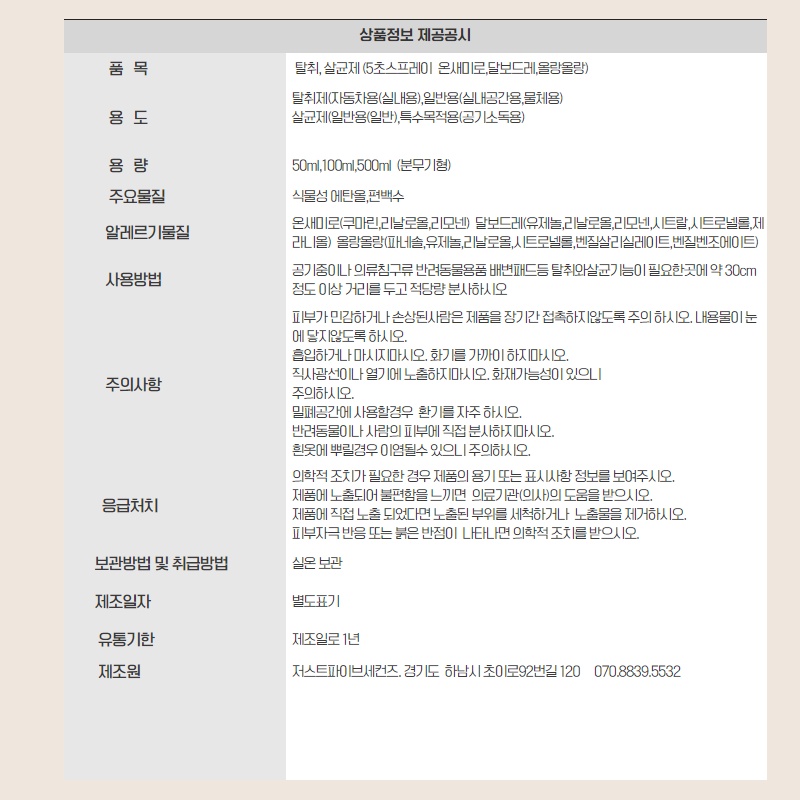 슈룹 5초 스프레이 3종 500ml