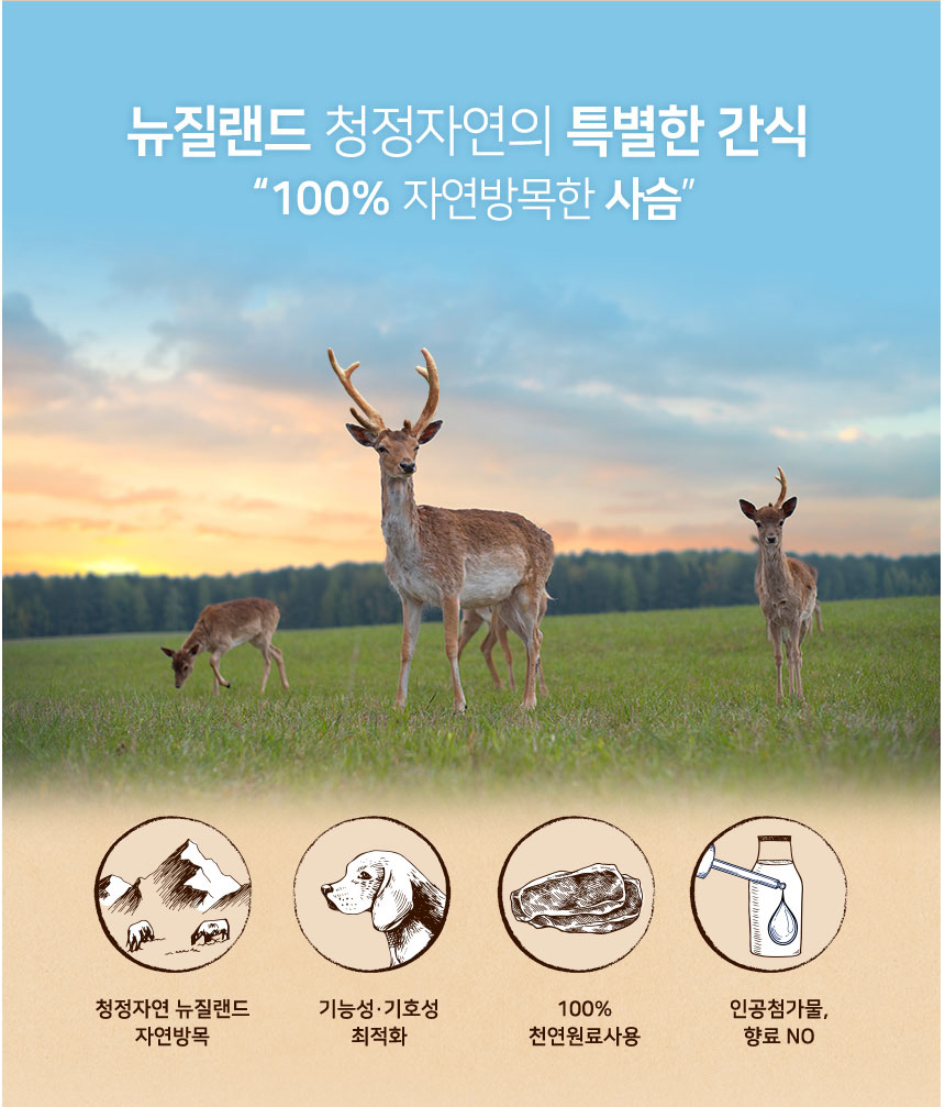 뉴질랜드 방목 100% 사슴갈비 간식입니다.
