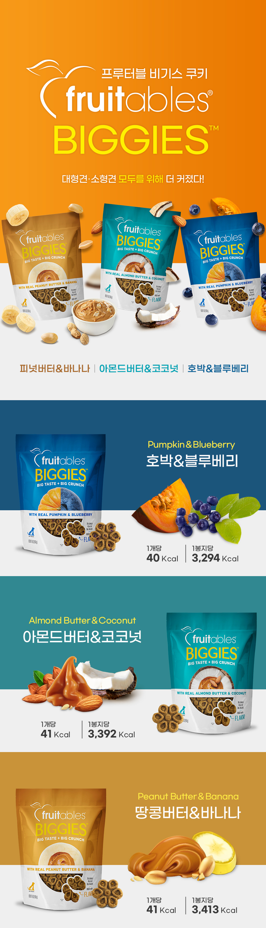 대형견 소형견 모두를 위해 더 커진 프루터블 쿠키 비기스 3종