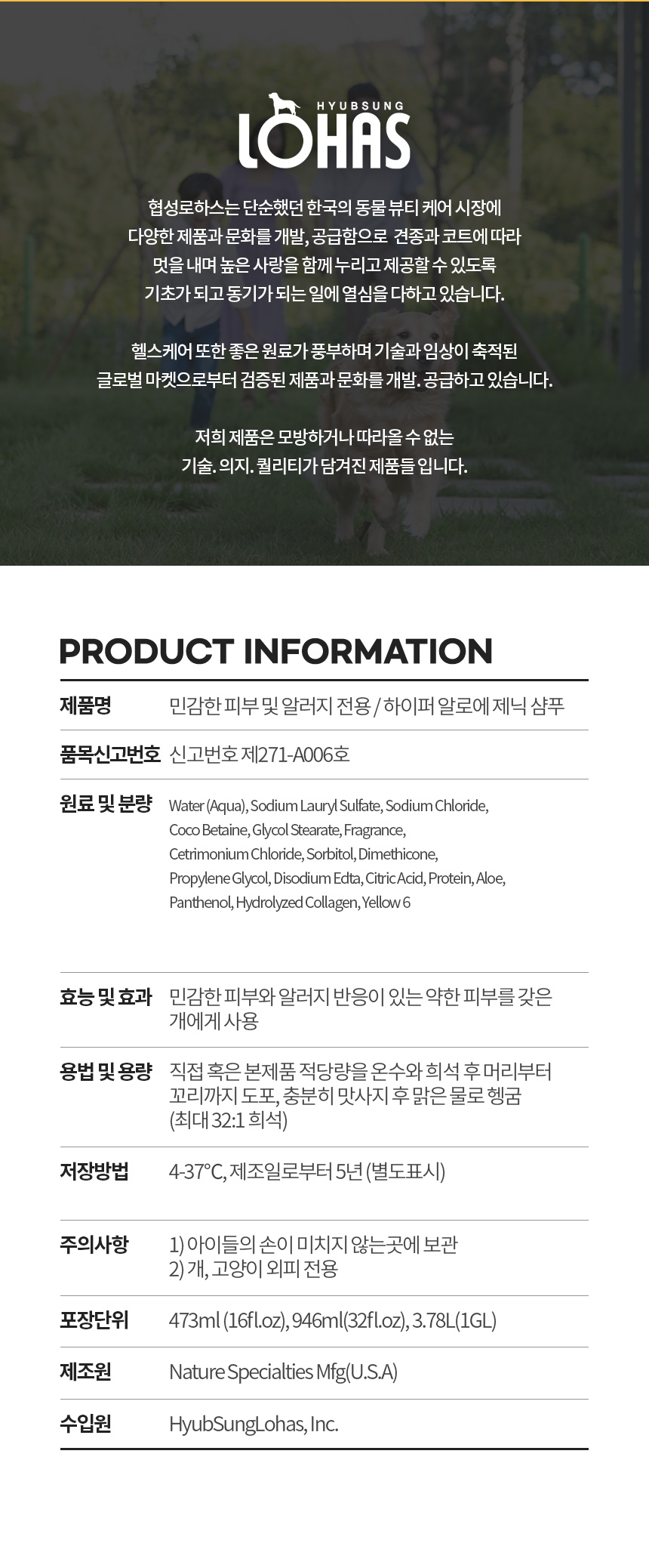 협성로하스 내이쳐스스페셜티스 하이퍼 알로에 제닉 샴푸 473ml (민감성, 알러지 피부)