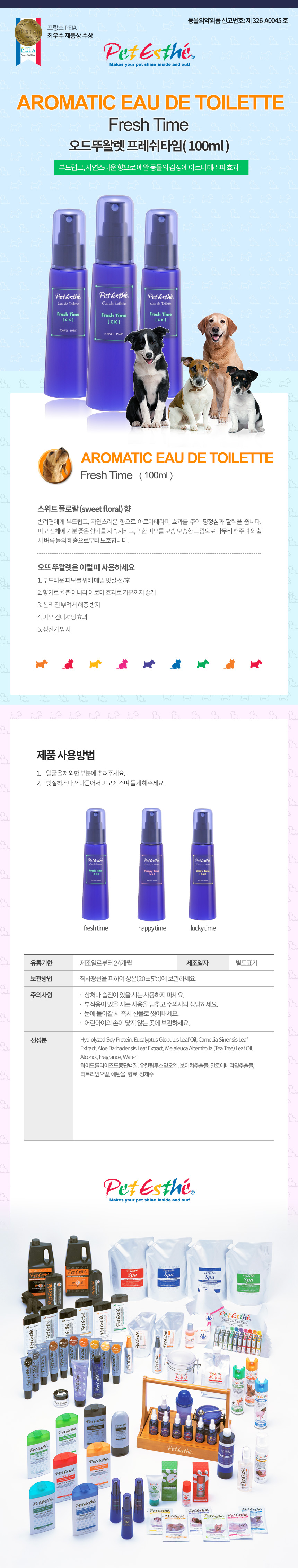 펫에스테 오드뚜왈렛 100ml 프레쉬타임 (스위트 플로랄 향)