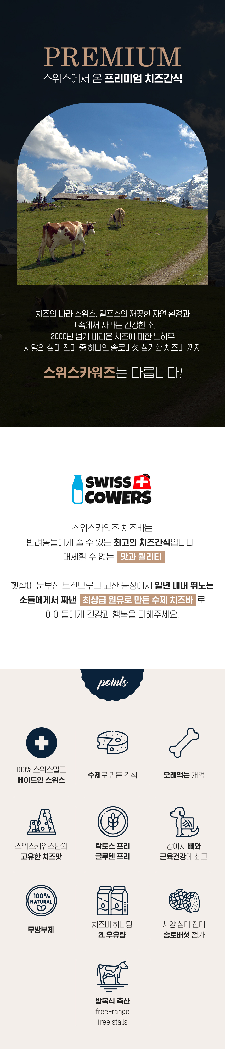 햇살이 눈부신 토겐부르크 고산 농장에서 일년 내내 뛰노는 소들에게서 짜낸 최상급 원유로 만든 수제 치즈 간식으로 아이들에게 건강과 행복을 더해주세요.
