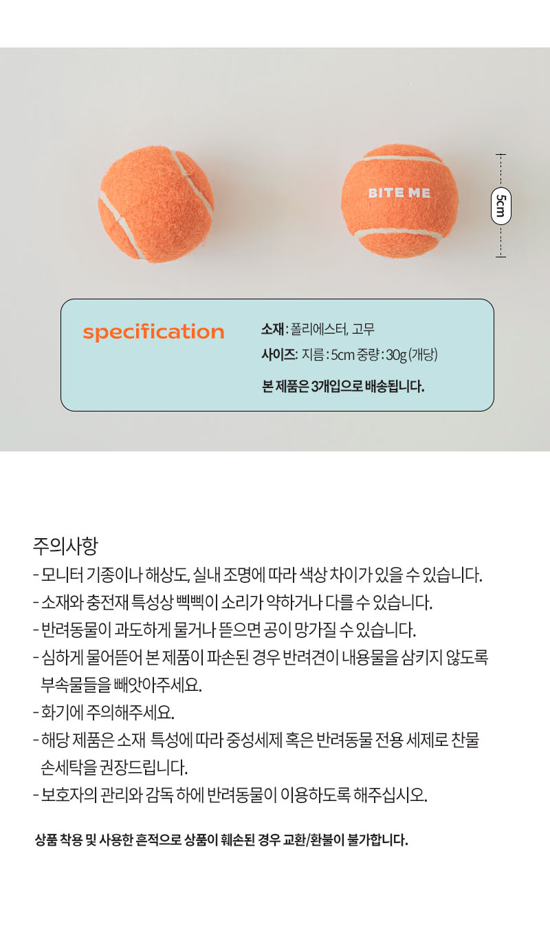 바잇미 미니 테니스공 장난감 3개입 (삑삑)