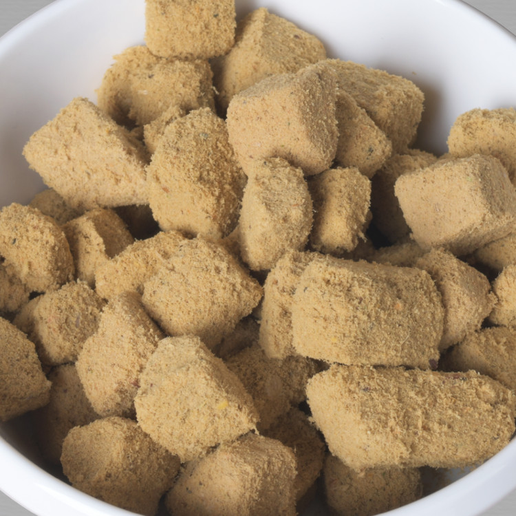 생선 단백질원의 특성상 가루가 많고 너겟이 잘 부서질 수 있습니다.