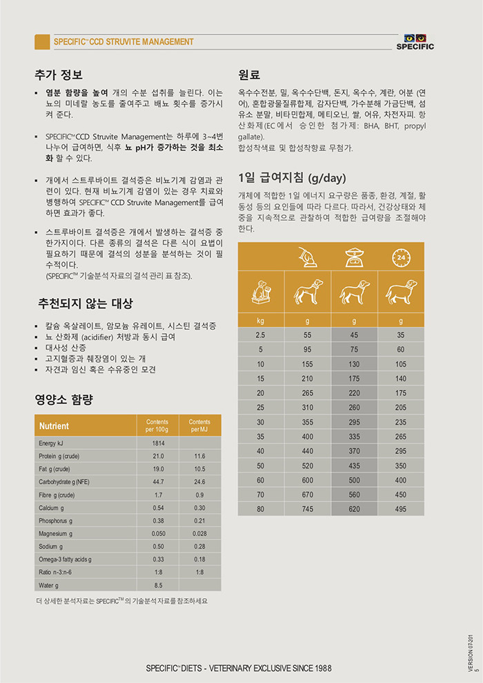 스페시픽 처방사료 CCD 요로결석 2kg 7kg
