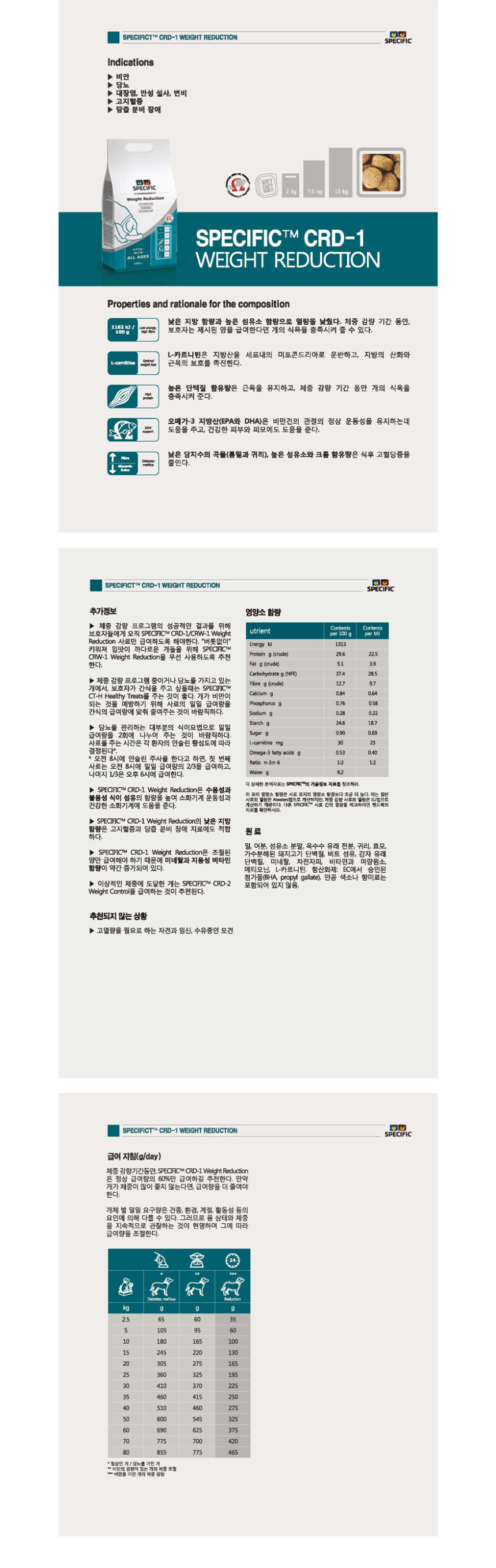 스페시픽 처방사료 CRD-1 체중감량 1.6kg 6kg 12kg