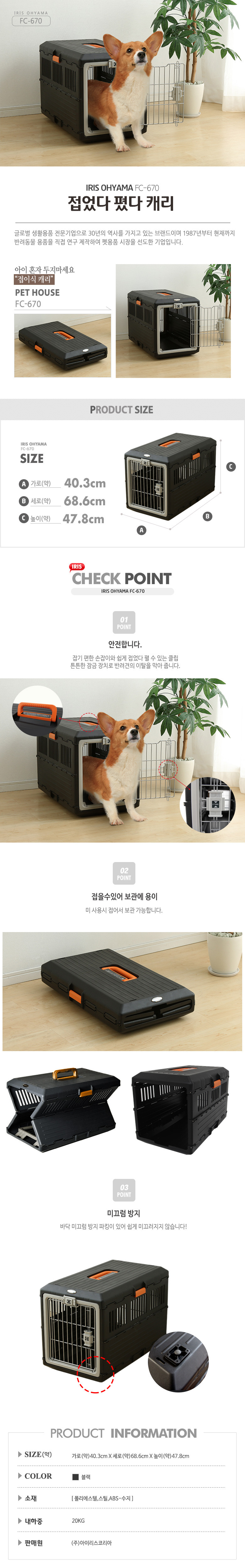 아이리스 접이식 켄넬 대형 FC-670 이동장 케이지
