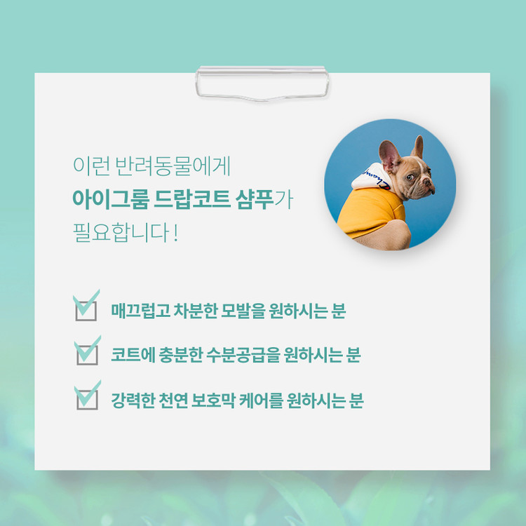 코트의 곱슬거림을 줄이고 차분하게 유지시켜주는 드랍코트효과