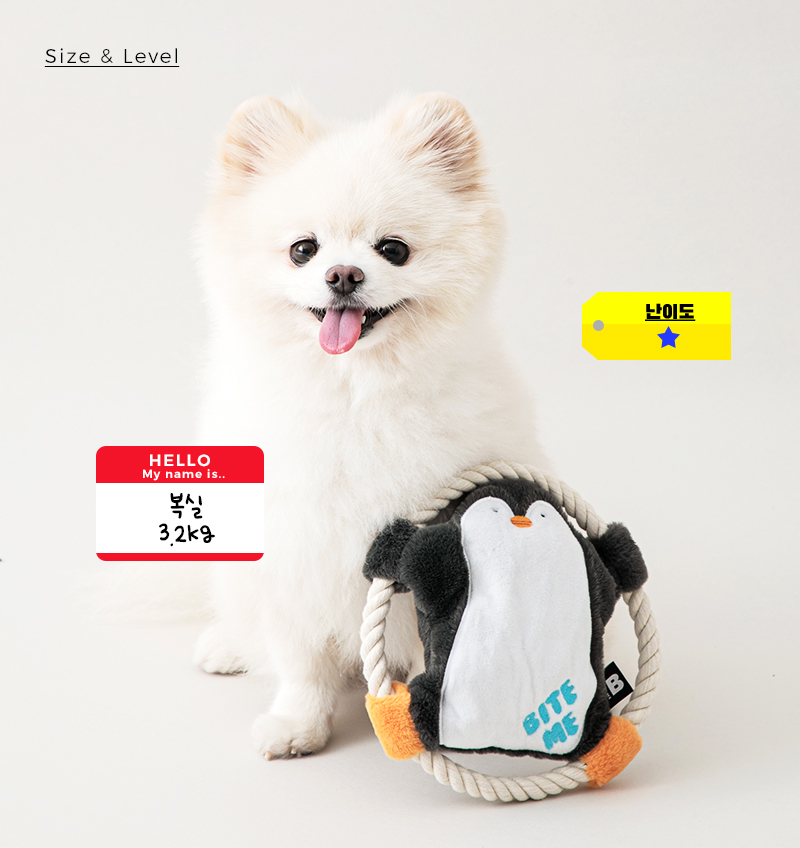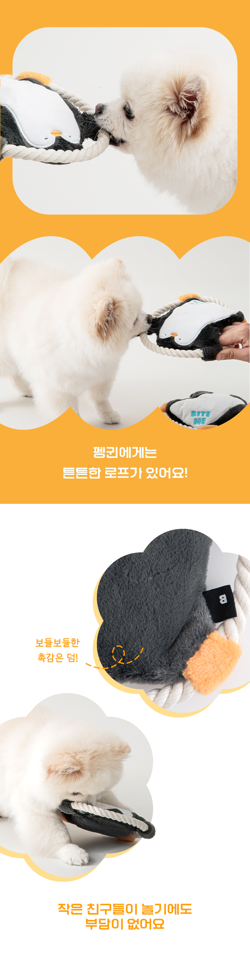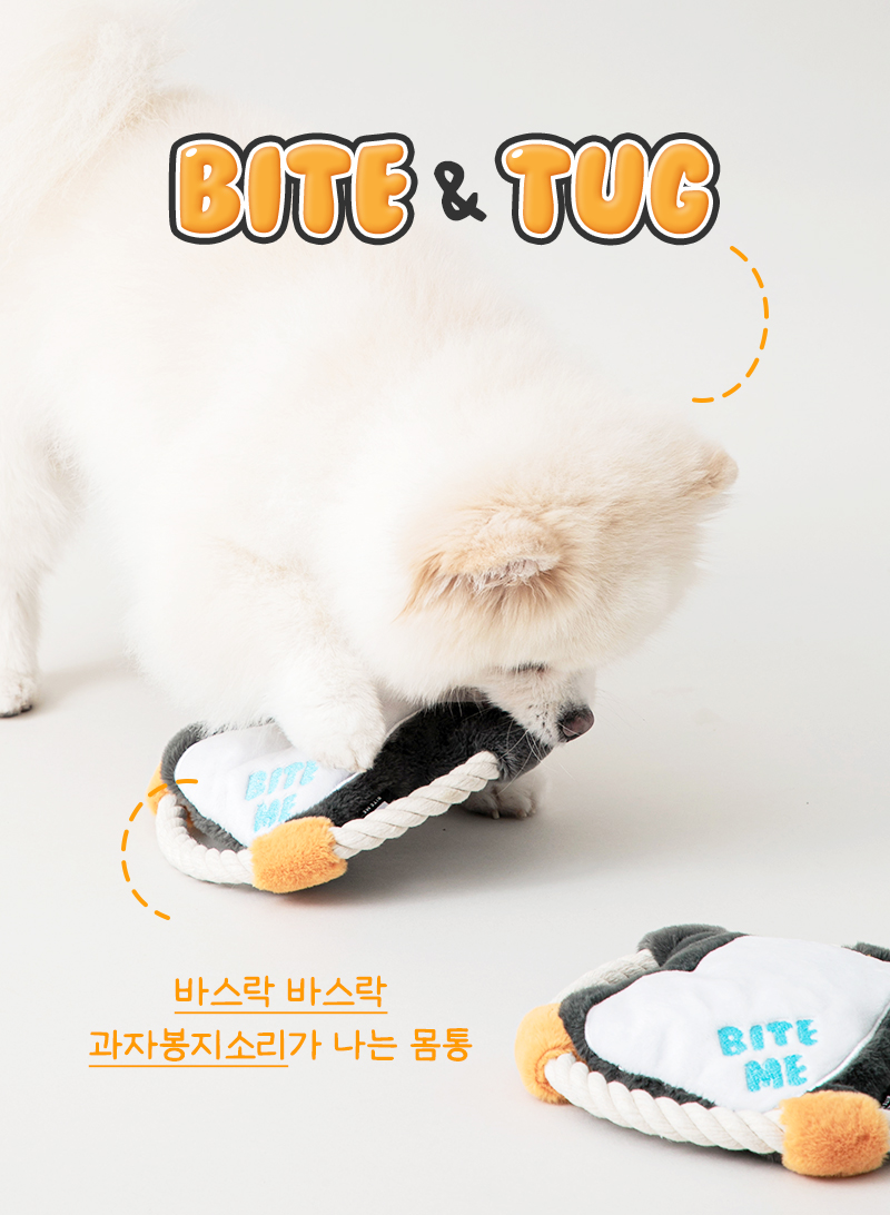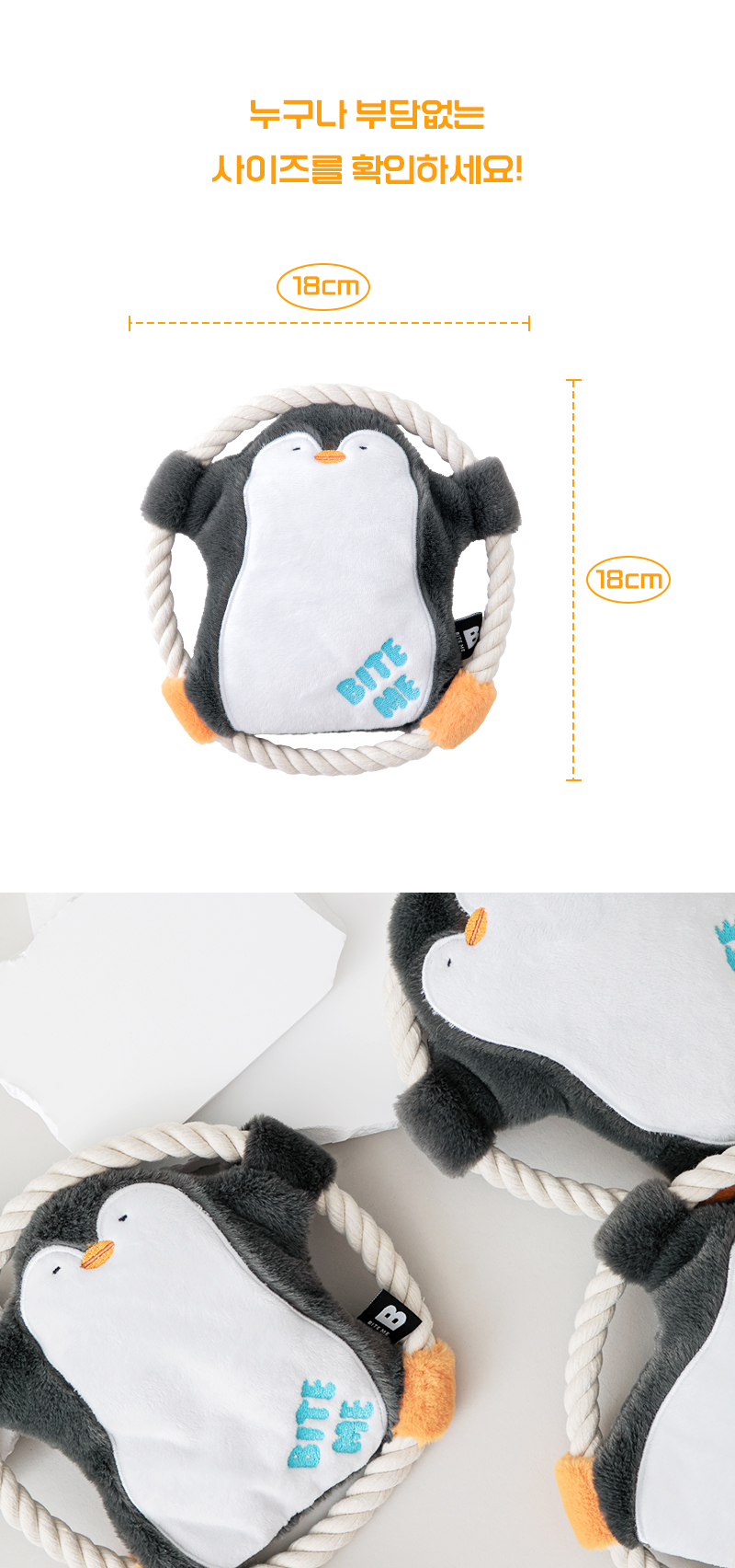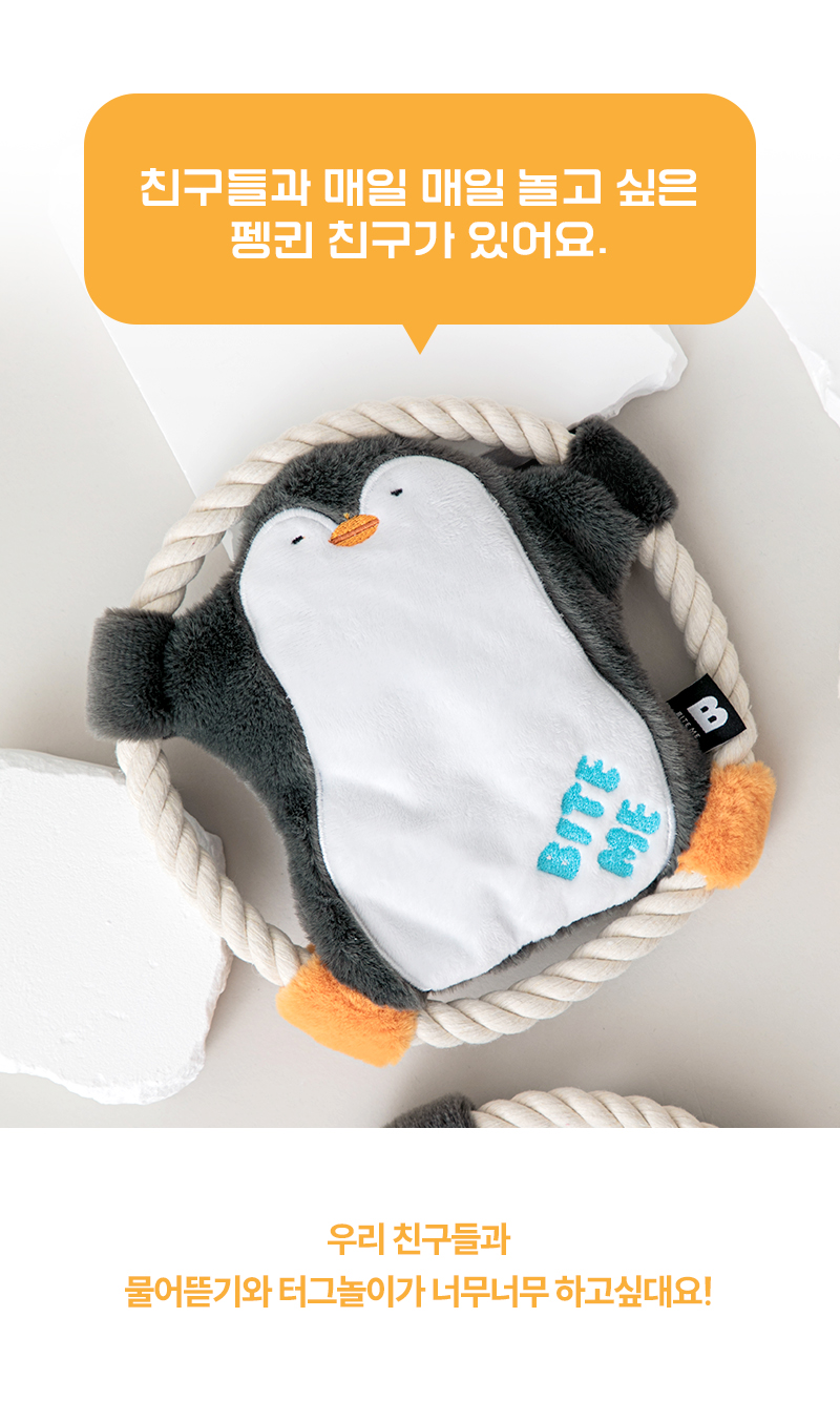 바잇미 허그미 로프 장난감 - 펭귄 강아지 터그놀이 바스락 장난감 이갈이