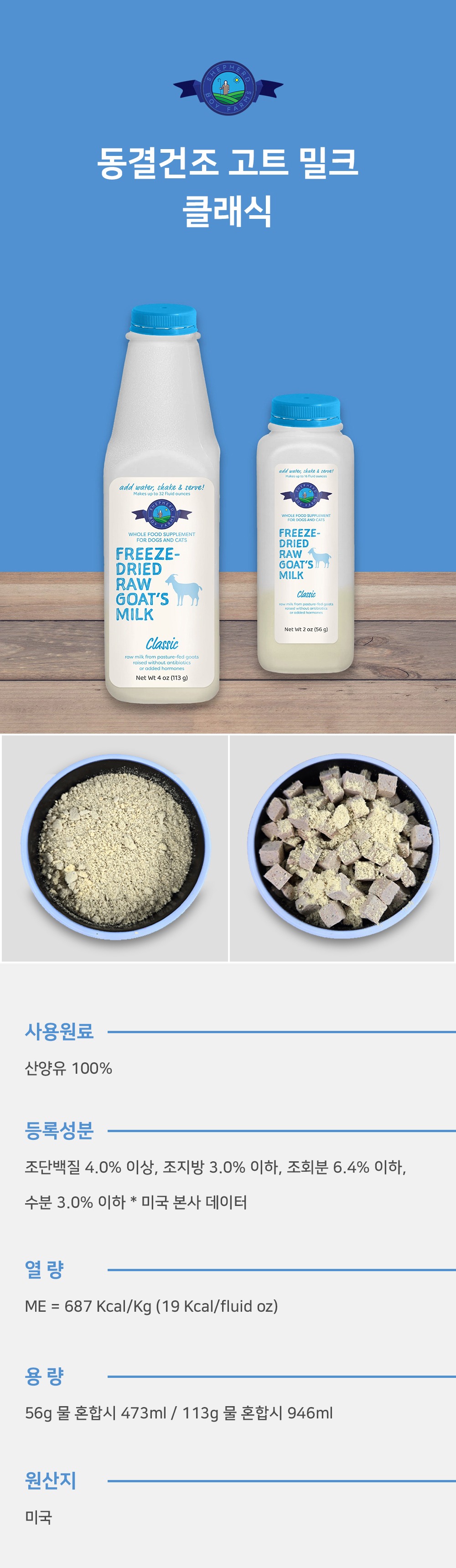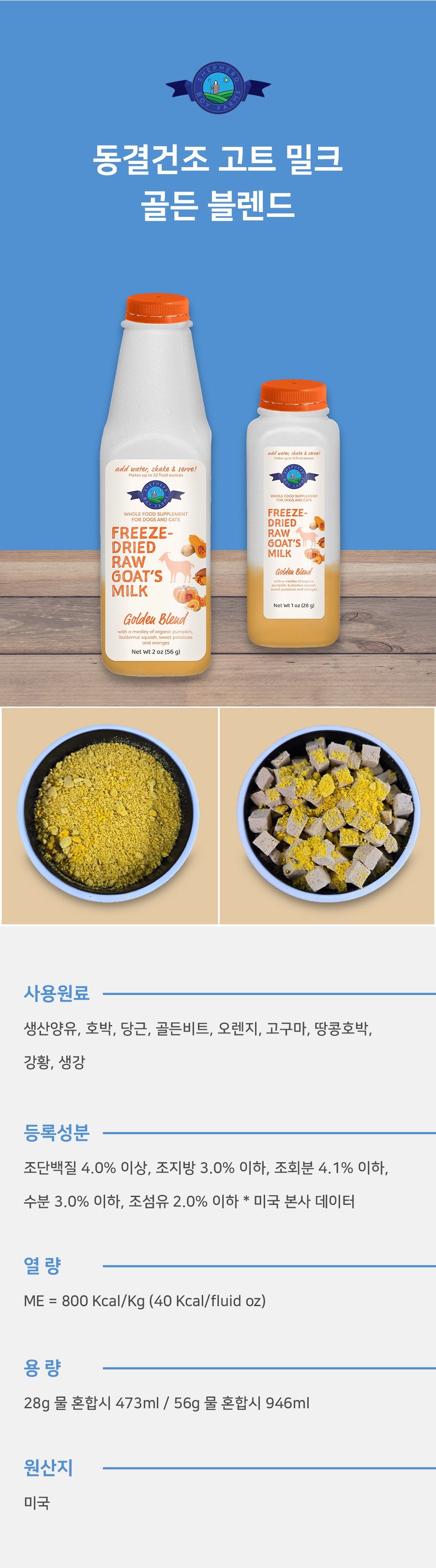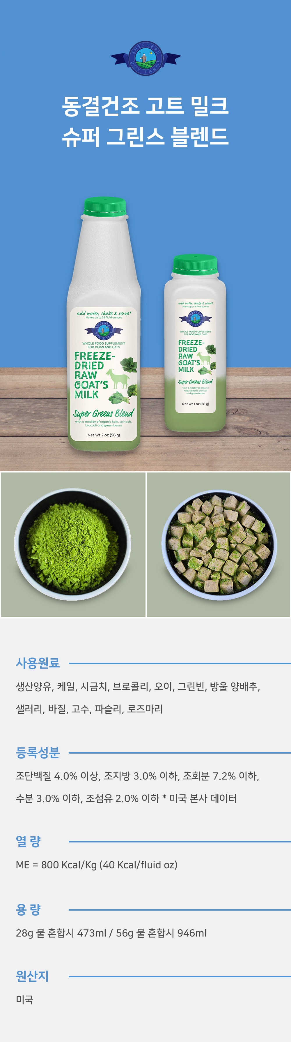 셰퍼드보이팜즈 동결건조 고트 밀크 슈퍼 그린스 블렌드 473ml