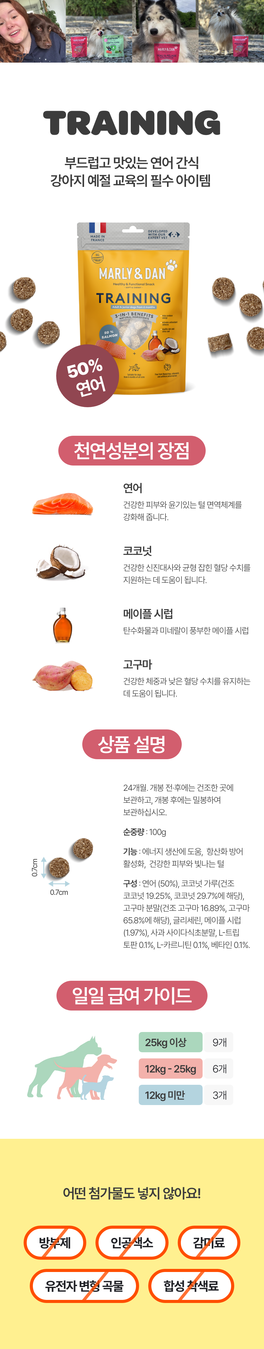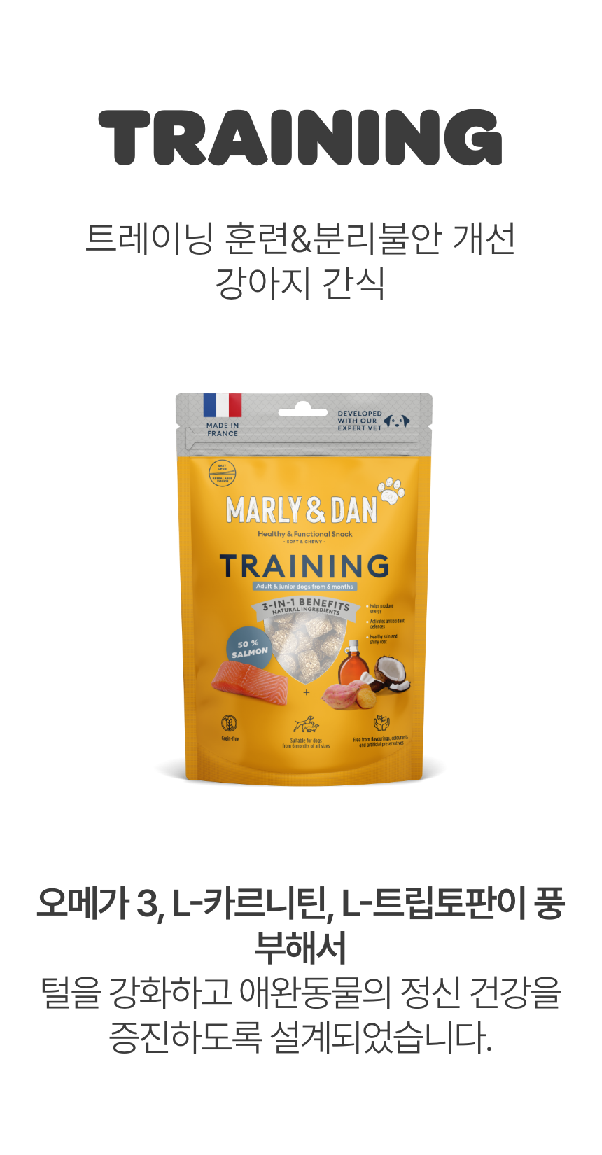 [1+1] 말리앤댄 트레이닝 분리불안 개선 연어 간식 100g (유통기한 2026년 2월)