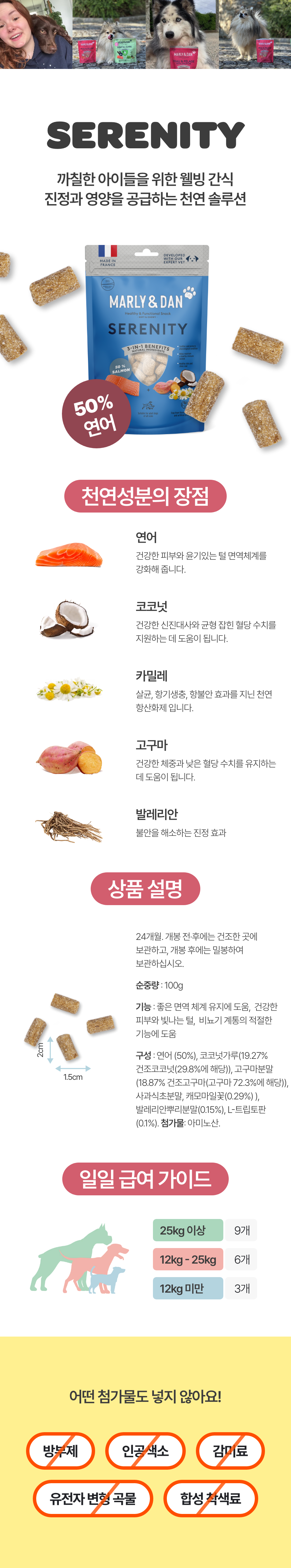 [1+1] 말리앤댄 세러니티 스트레스 해소 연어 간식 100g (유통기한 2026년 2월)