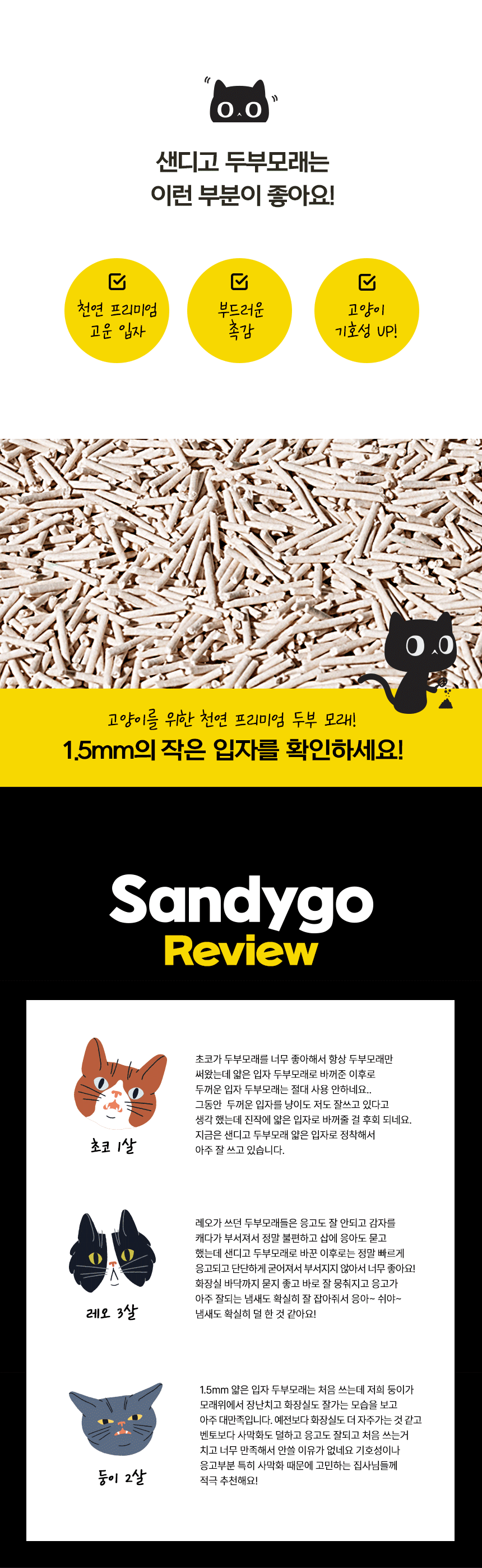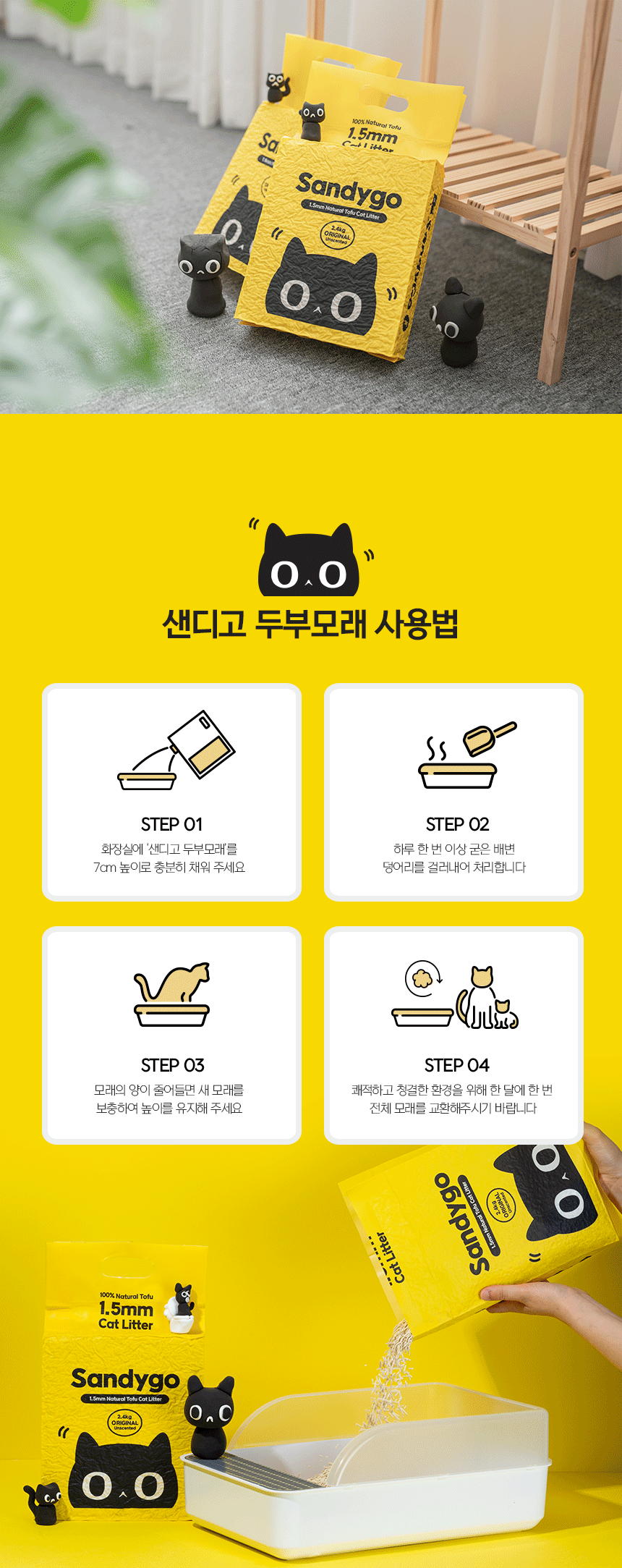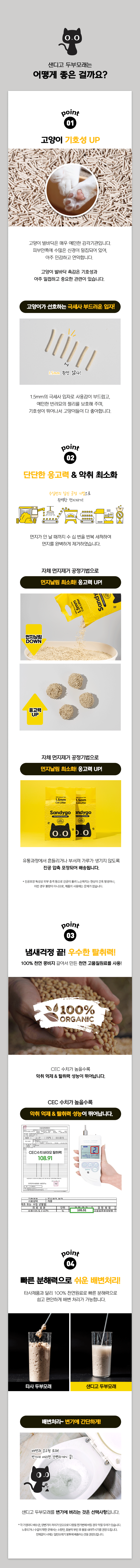 샌디고 고양이 두부모래 1.5mm 초슬림입자 무향 2.4kg x 6개