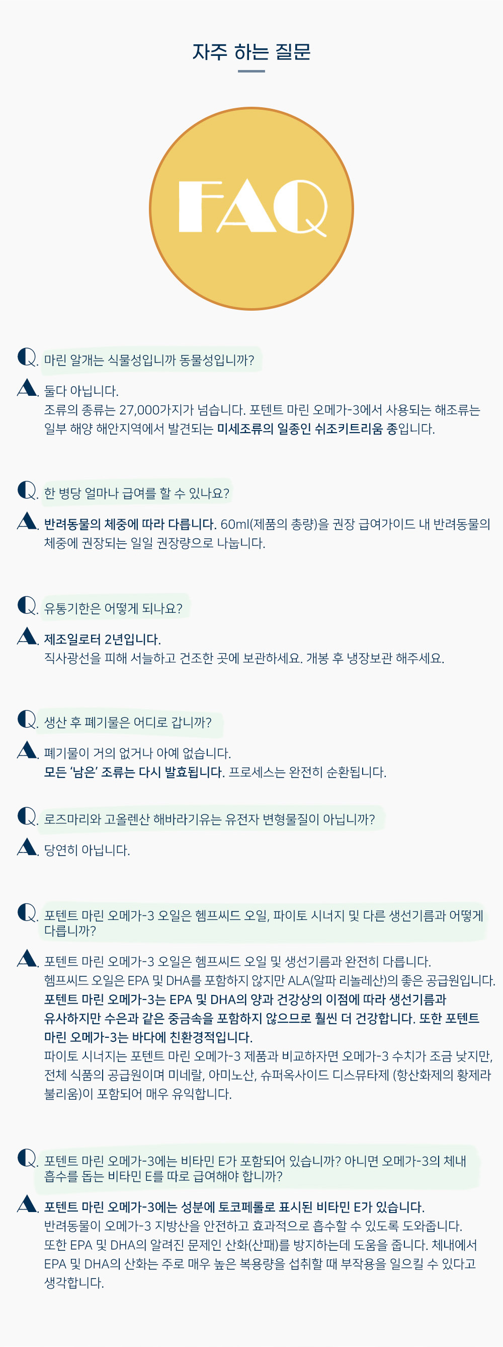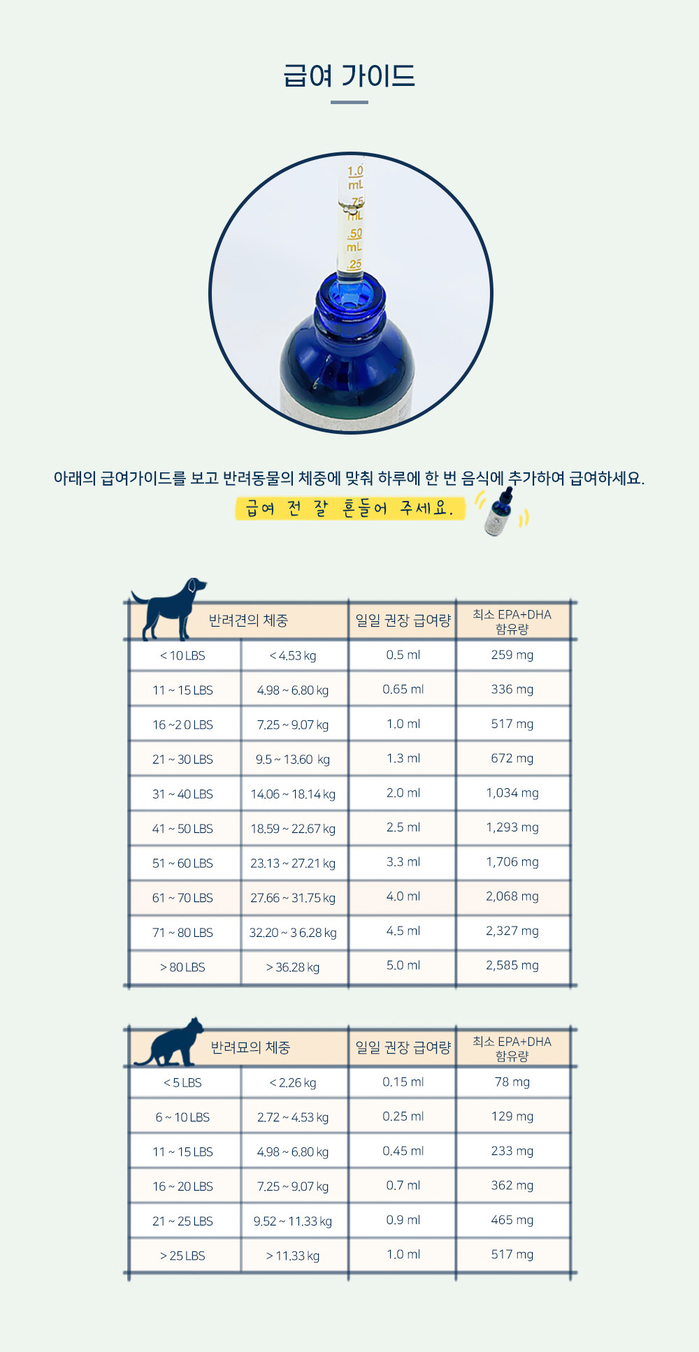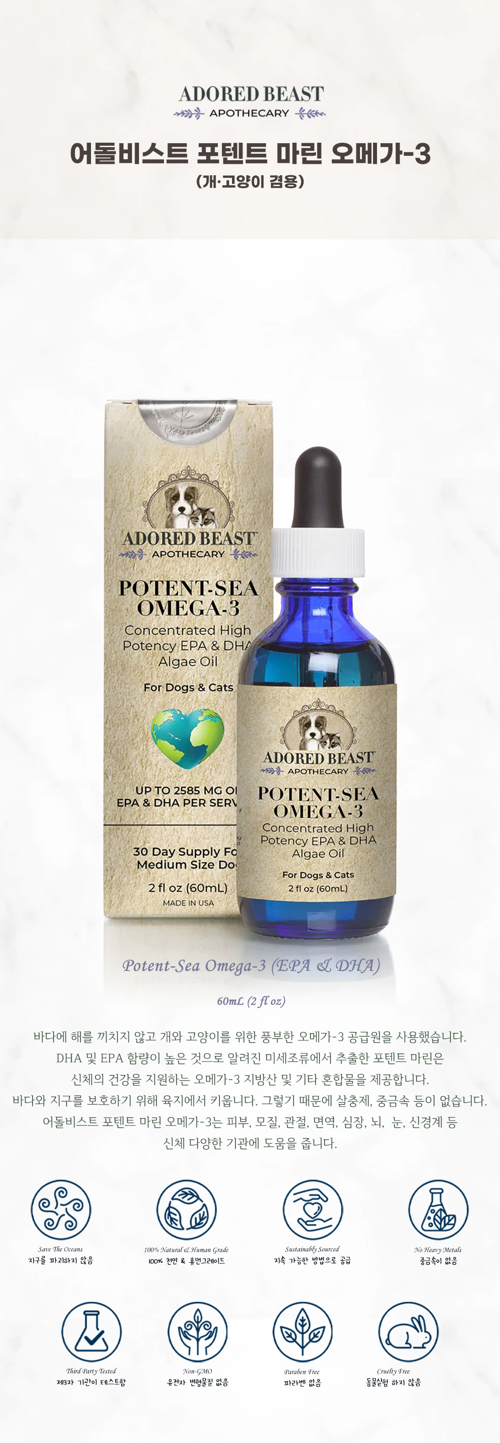 중금속 오염의 걱정에서 벗어나 양질의 풍부한 오메가3 지방산을 공급하는 제품으로 개·고양이 겸용입니다.