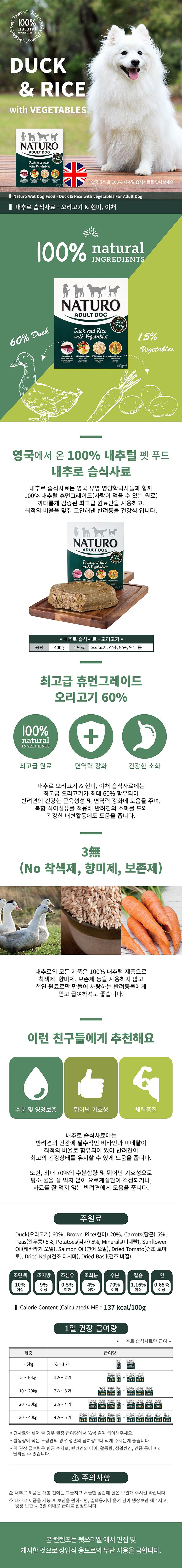 내추로 습식사료 오리고기 400g